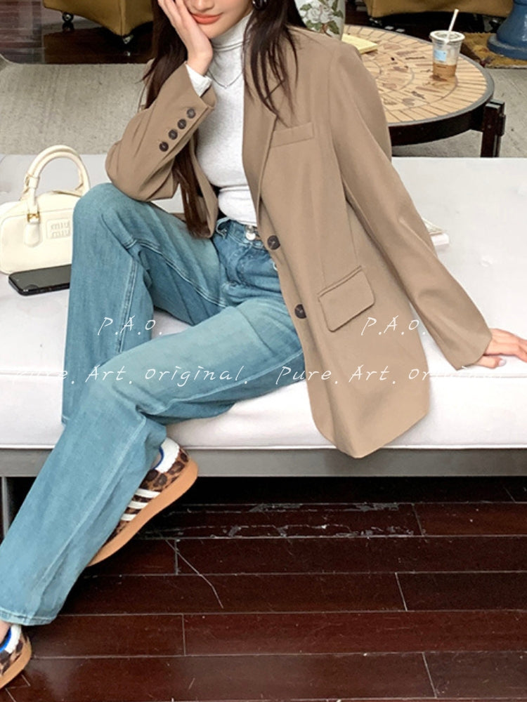 A versatile staple with modern tailoring and relaxed structure — ideal for everyday looks, casual office wear, weekend brunches, or city strolls. Oversized blazers continue to be a fashion favorite for their ability to make any outfit look styled yet effortless. You can balance the volume with fitted jeans or leggings, or layer over tailored trousers for a more refined take.