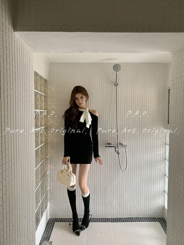 The black-and-white contrast gives the Noira Dress a modern “sweet-meets-cool” aesthetic—perfect for creating a confident, statement look.