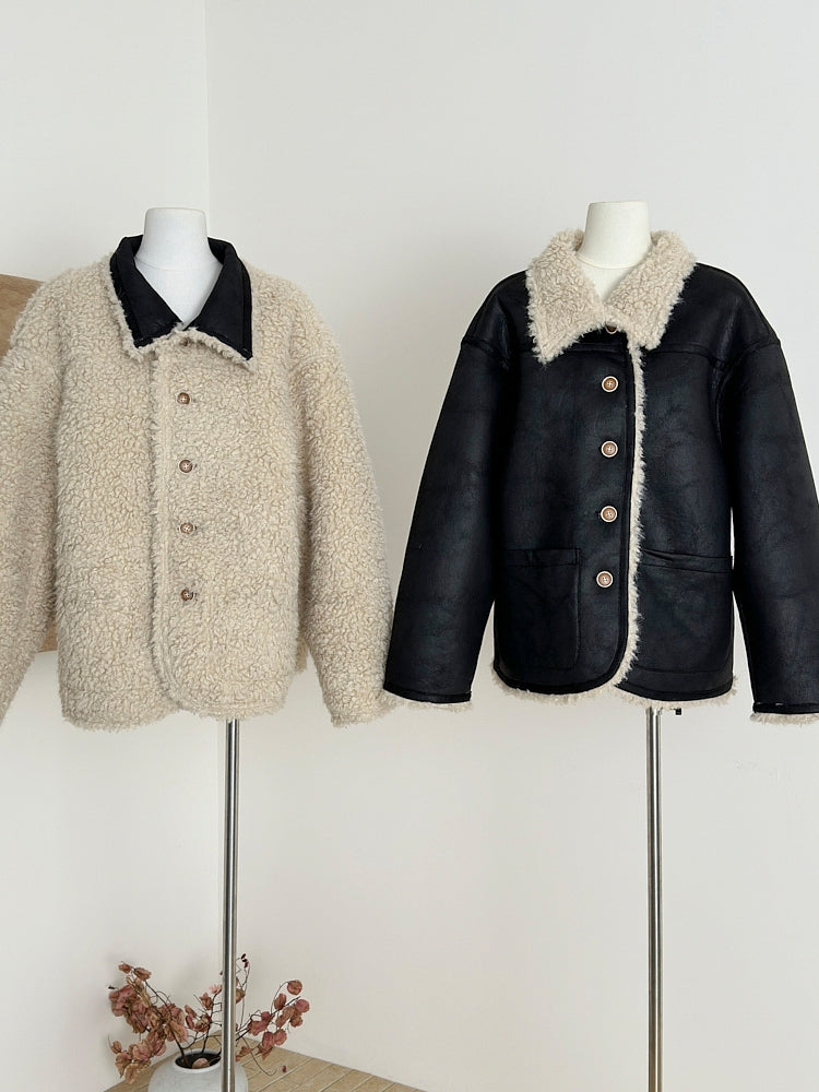 Reversible Faux Shearling & PU Winter Jacket