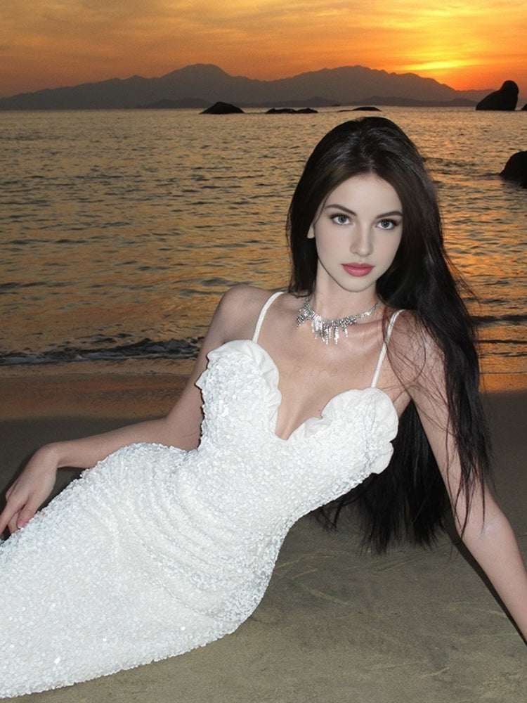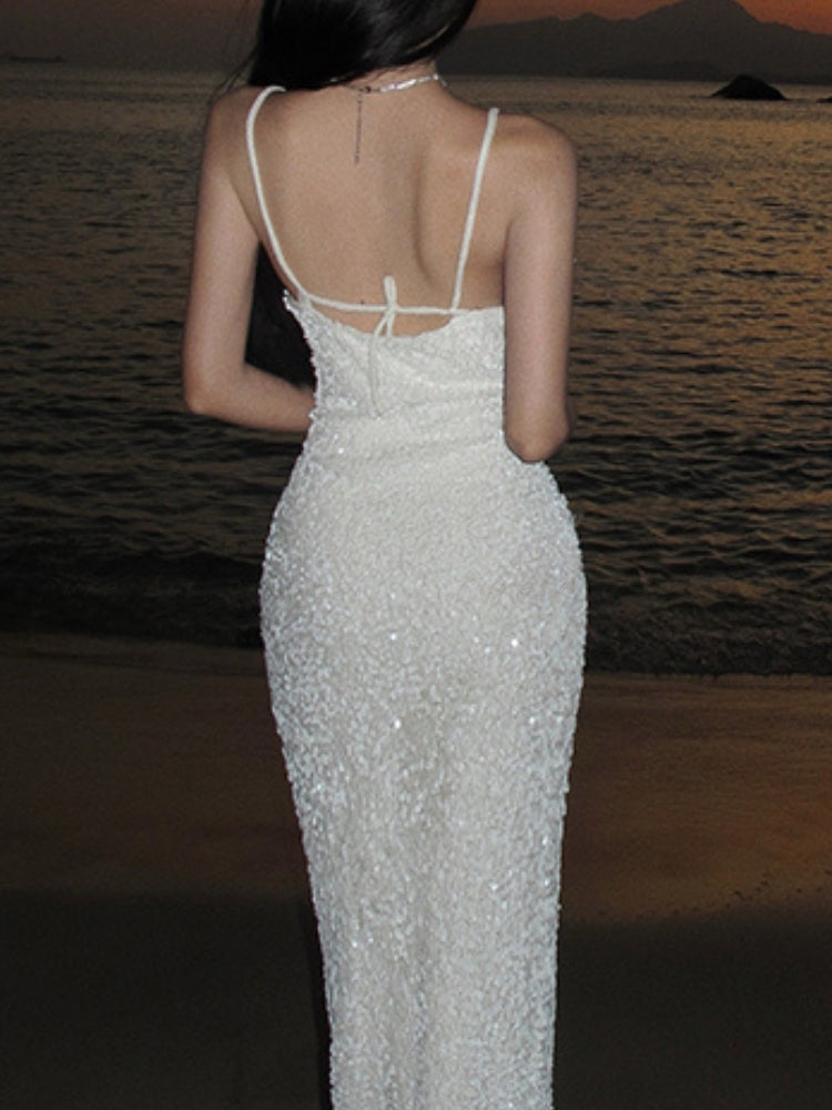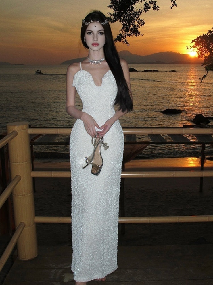Elegant, romantic, and designed to shine — this velvet collar bud detail sequin dress combines soft chiffon flow with sparkling sophistication. Crafted from smooth woven polyester with a chiffon overlay, it features a V-neckline accented by a luxurious velvet collar and delicate bud detailing. The sleeveless, floor-length silhouette creates a graceful, elongated effect, while subtle sequin embellishments add refined shimmer. Perfect for evening events, weddings, formal occasions, and special celebrations.