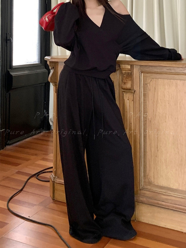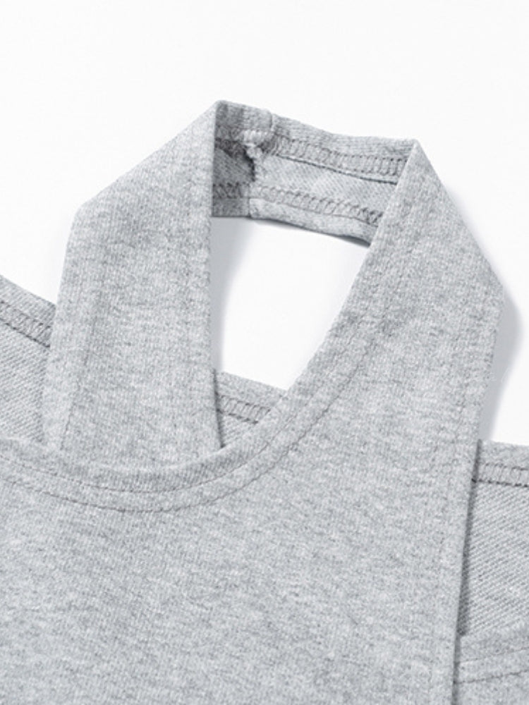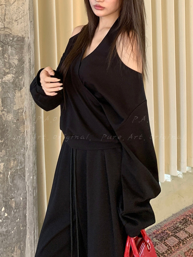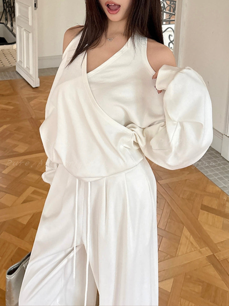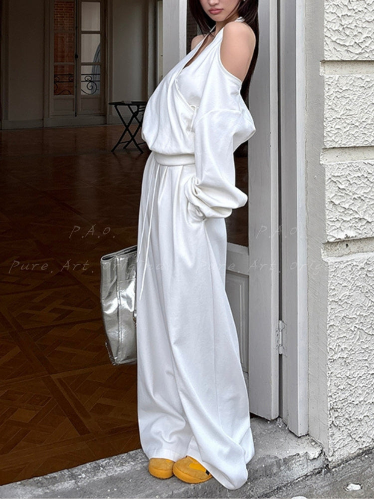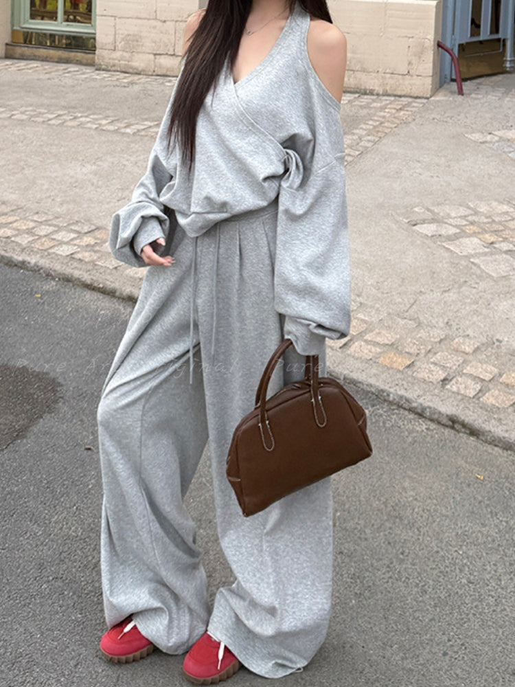 Off‑Shoulder Halter Sweatshirt & Wide‑Leg Pants Two‑Piece Set