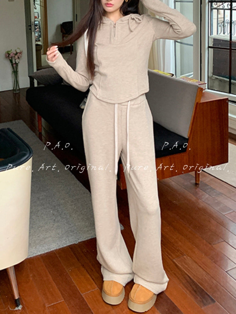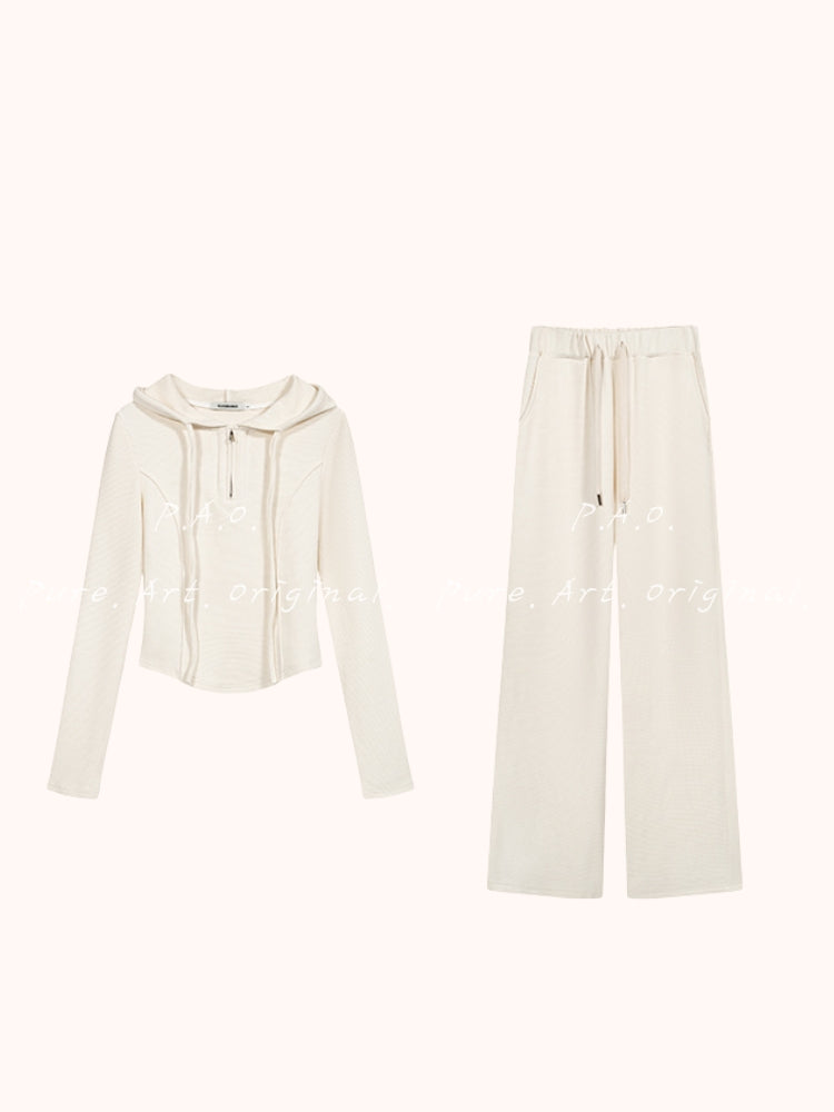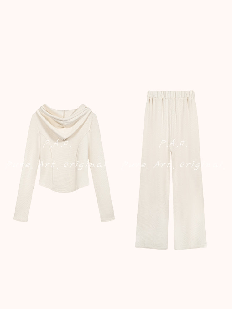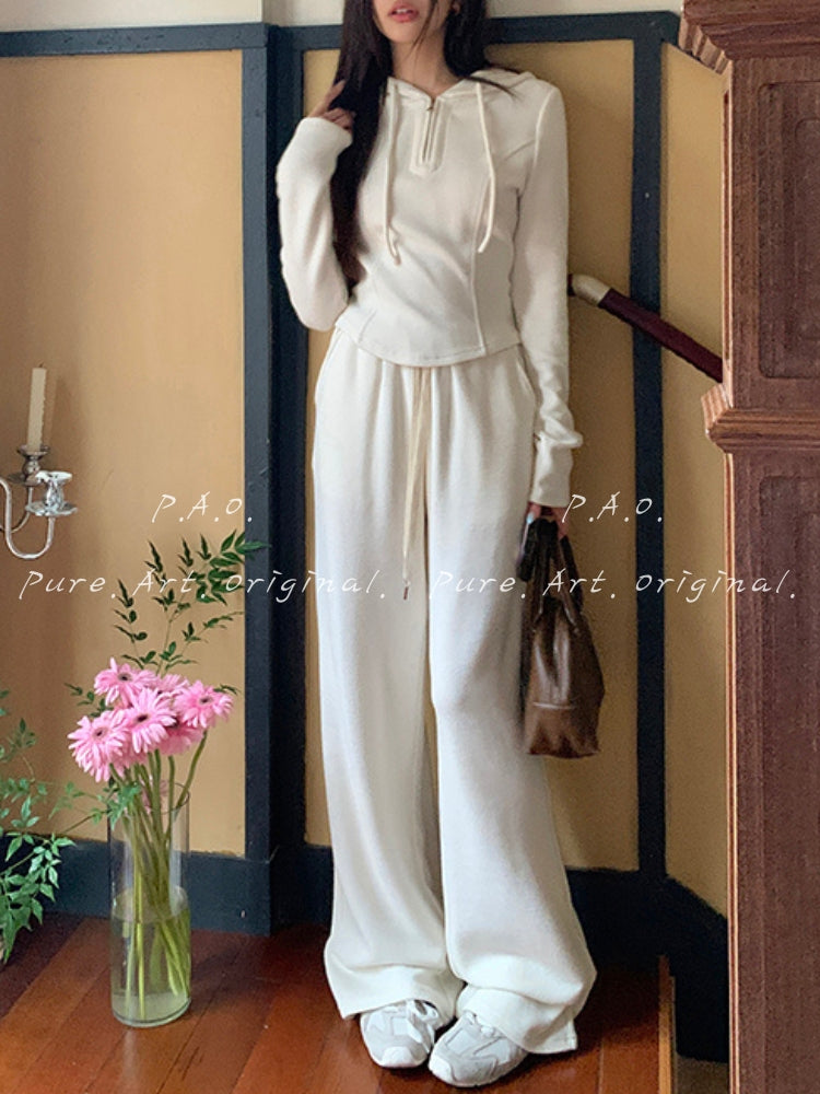 Hooded Knit Top & Wide‑Leg Pants Two‑Piece Set