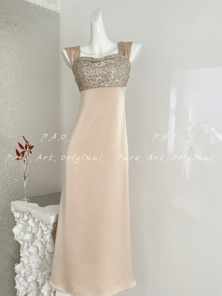 A standout choice for weddings (guest attire), cocktail parties, romantic dinners, galas, and holiday soirees. Its refined satin sheen and delicate sequin detail ensure you look put-together without effort, making it a timeless piece for your special-occasion wardrobe.