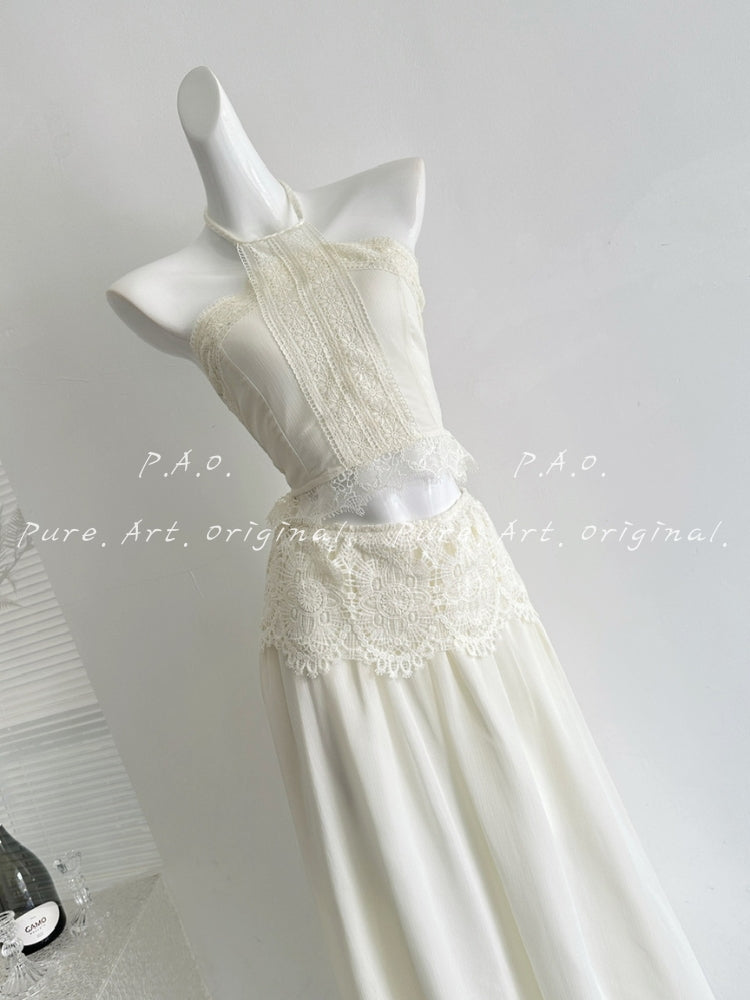 Halter Lace Two-Piece Maxi Skirt Set