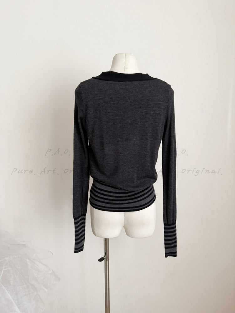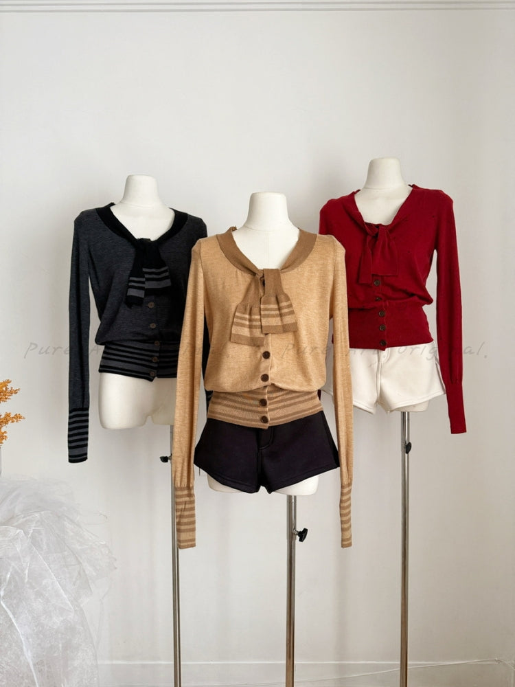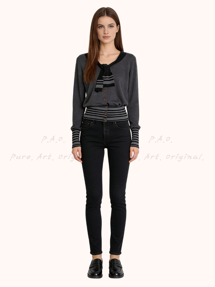 Striped Knit Slim Waist Tie‑Detail Sweater