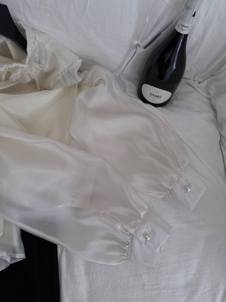 Rendered in a delicate almond hue with a subtle sheen reminiscent of dawn in the South of France, the satin‑like finish reflects light softly without overpowering. The relaxed cut and airy sleeves create movement and comfort, making this blouse equally suited for casual everyday wear or refined daytime occasions. Whether paired with tailored trousers or a flowing skirt, the Marceline Blossom Blouse brings refined warmth and gentle character to your wardrobe.
