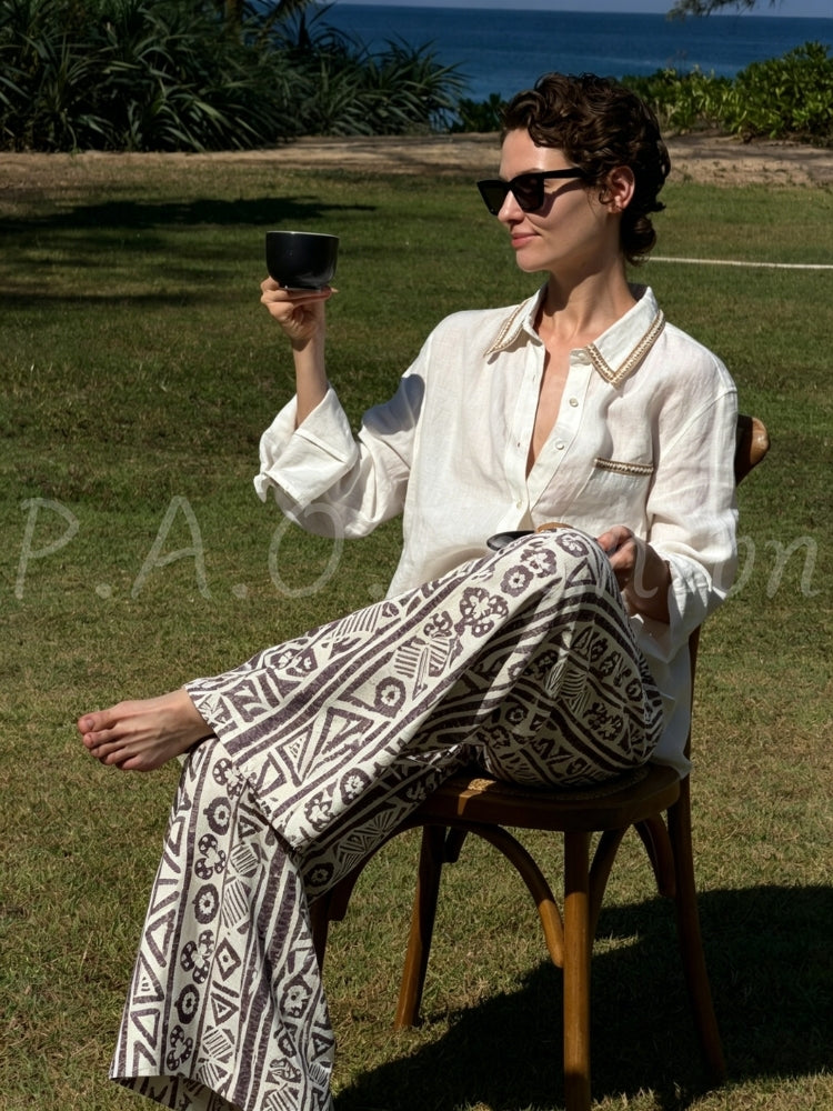 These printed wide-leg pants are designed for women who want comfort without sacrificing style. Linen-cotton blends are widely favored in summer fashion for their breathability, softness, and durability—making them ideal for warm, humid climates