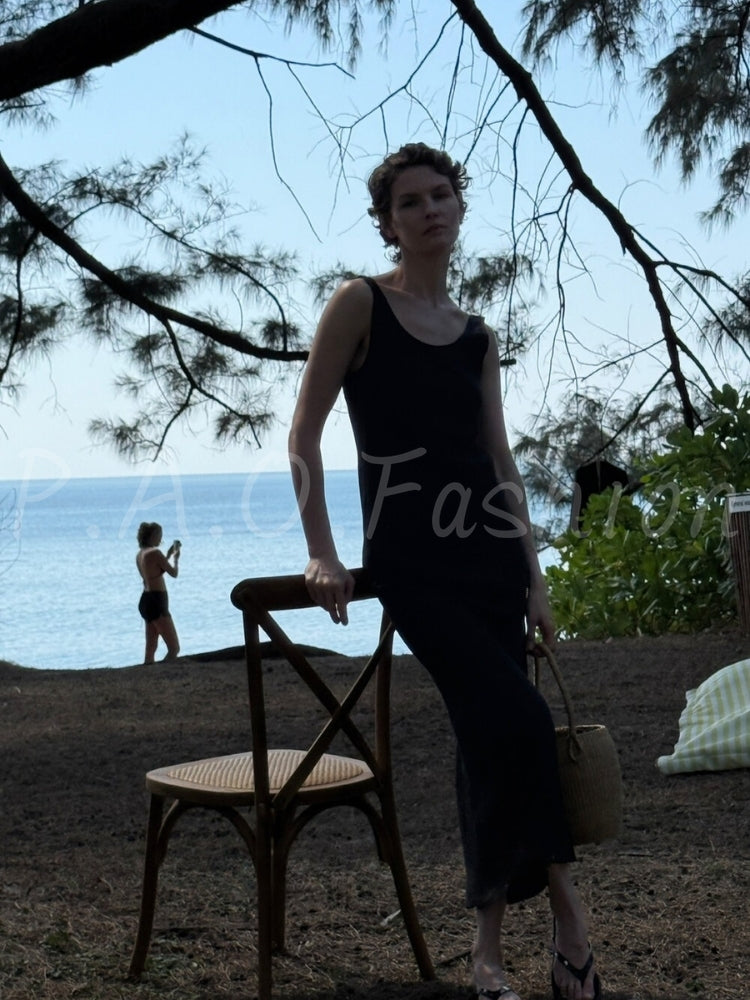 • Minimal U-neckline + open back — subtly sexy while keeping a relaxed, vacation-ready feel