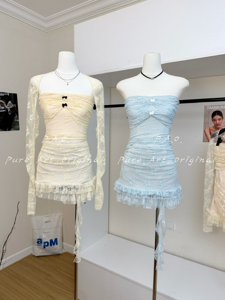 The detachable lace blouse offers two distinct vibes: wear it on for understated elegance or remove it to show off a bold, playful edge. Whether you’re headed to dinner, drinks, or an evening stroll, this set strikes the perfect balance of sweet femininity and confident allure.